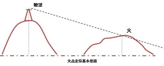 系統使用單個監控塔實現定位,根據DEM數據,監控塔高度,和攝像機(鏡頭)的水平角、俯仰角,計算攝像機視線與地面的交點。