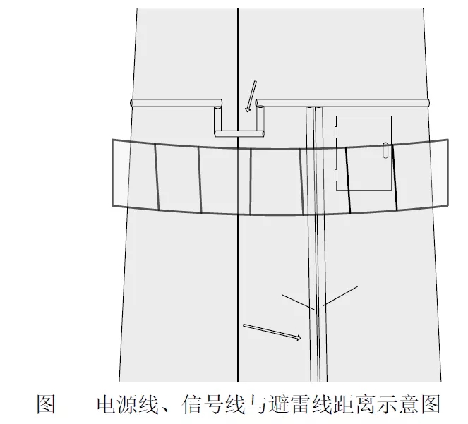 4、電源線、信號線與避雷線的平行凈距離≥1 m,交叉凈距離≥0.3 m(見下圖);