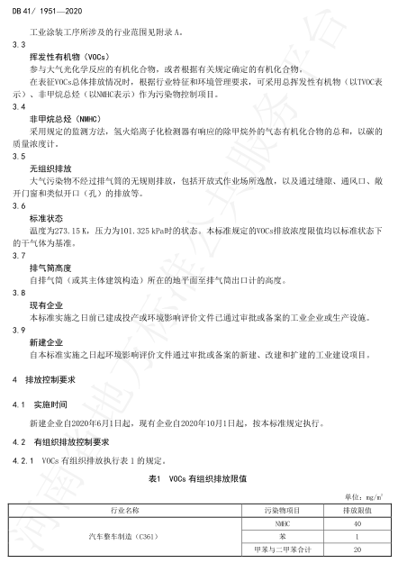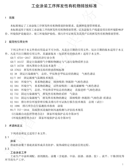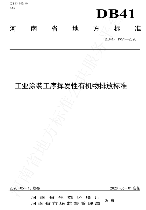 河南省工業(yè)涂裝工序揮發(fā)性有機(jī)物VOCS排放標(biāo)準(zhǔn)